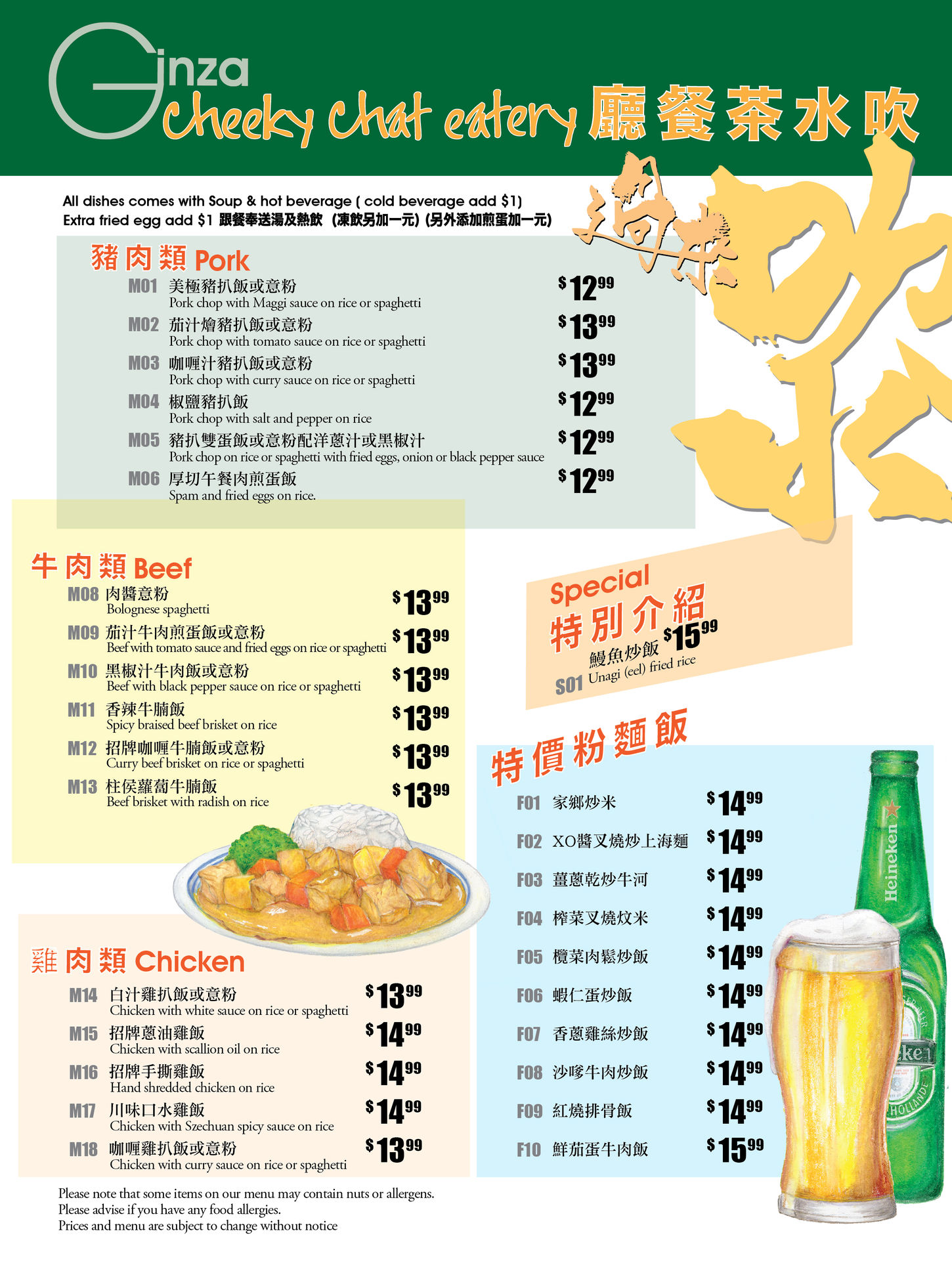 All dishes comes with Soup & hot beverage (cold beverage add $1)