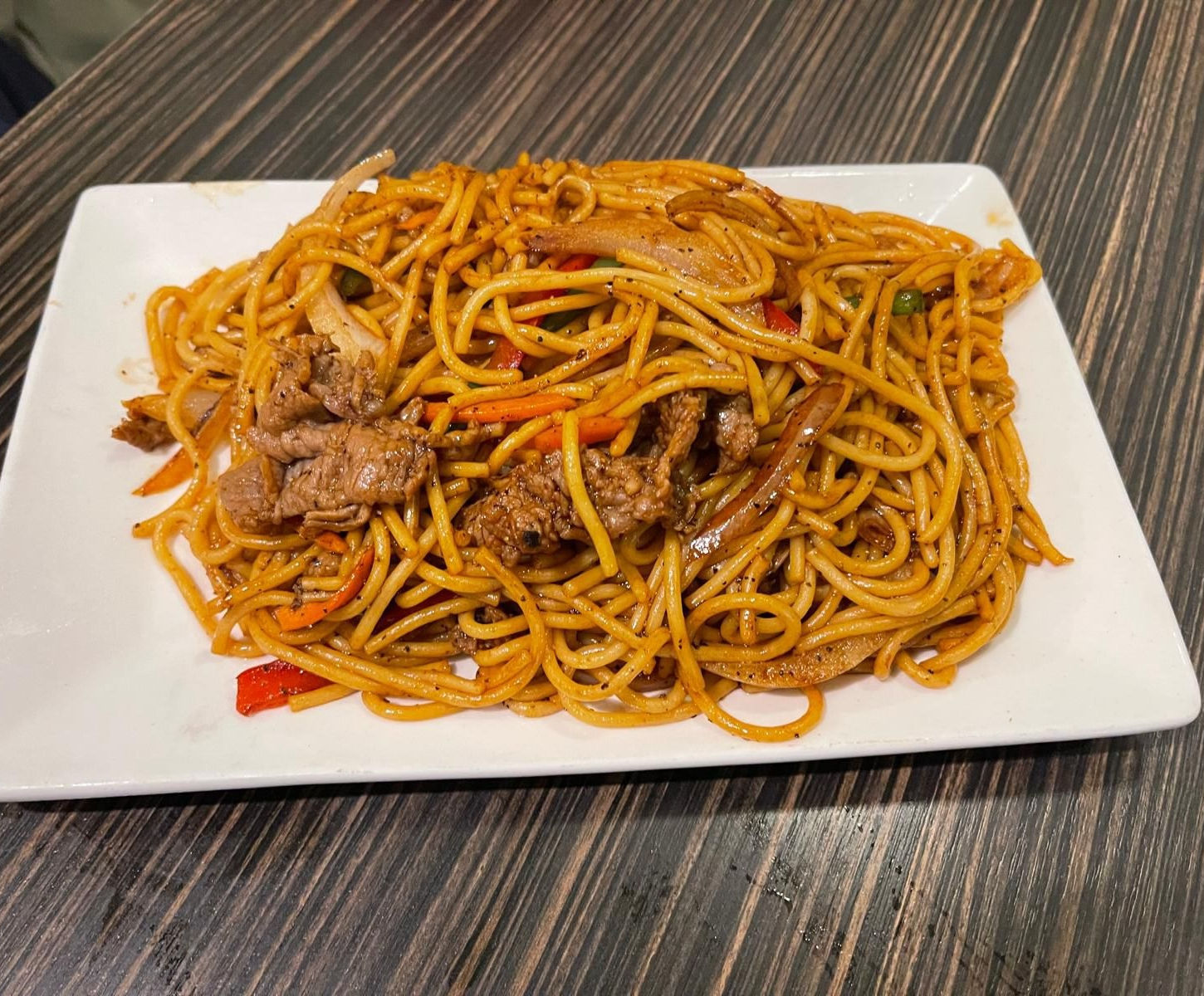 M10 Beef with Black Pepper Sauce on Rice or Spaghetti